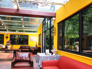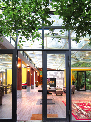 實際上,祕密花園最大的魅力在於它是一座玻璃屋。閃亮的陽光或是色澤豐富的綠蔭可以透過強化玻璃照映在屋裡的每個角落,連一片片落葉都在透明的屋頂上拼湊成不規則的拼圖,這是一幅無法取代的天然之美。坐在那樣的屋宇裡有種心靈通透,與大自然融合的感受,而這也是別的咖啡屋所無法提供的美好經驗。