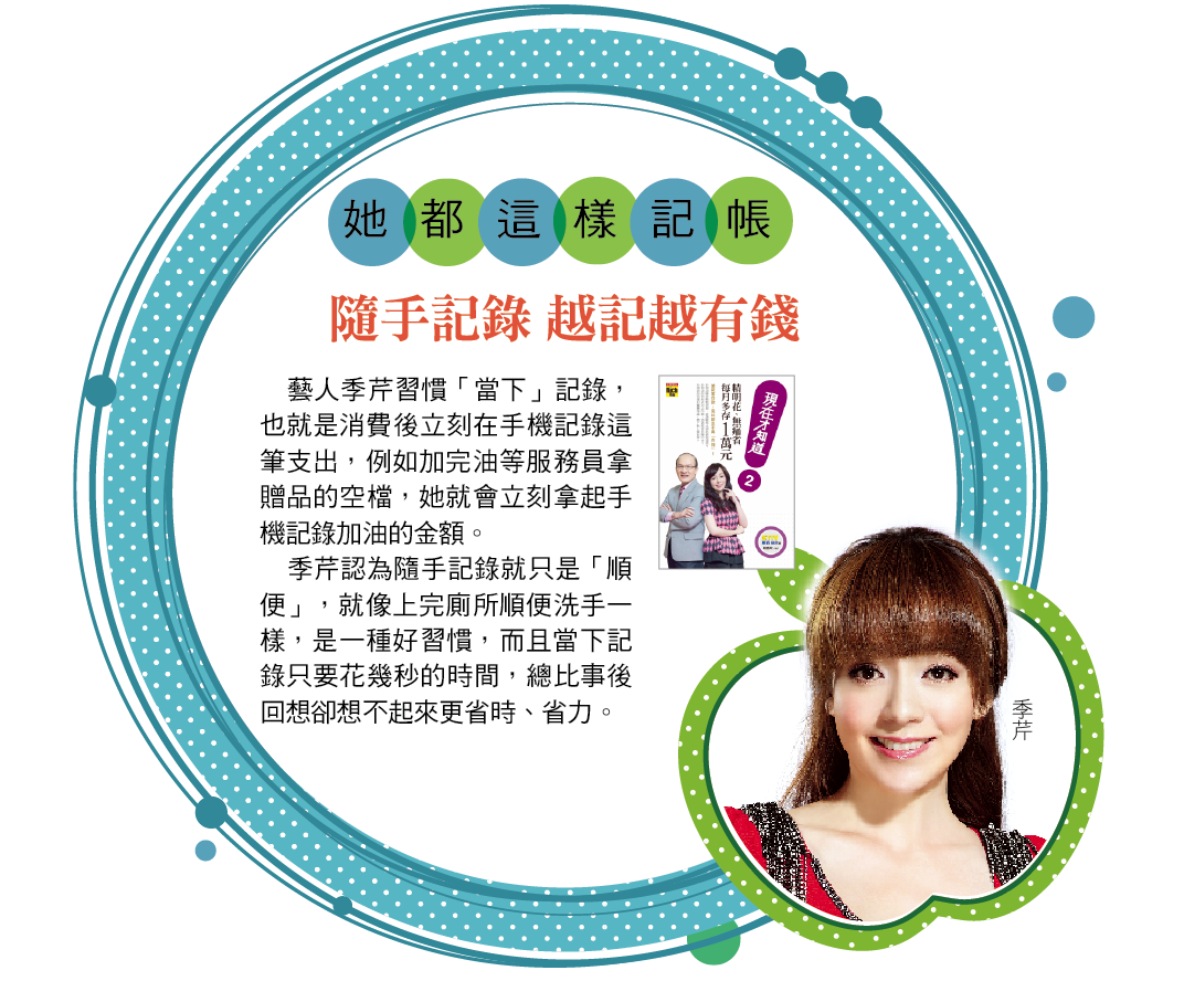 這樣就能夠在記憶還很深刻的時候,把各項支出做清楚的歸類,才不會時間過了太久,結果想不起來錢花去哪兒?