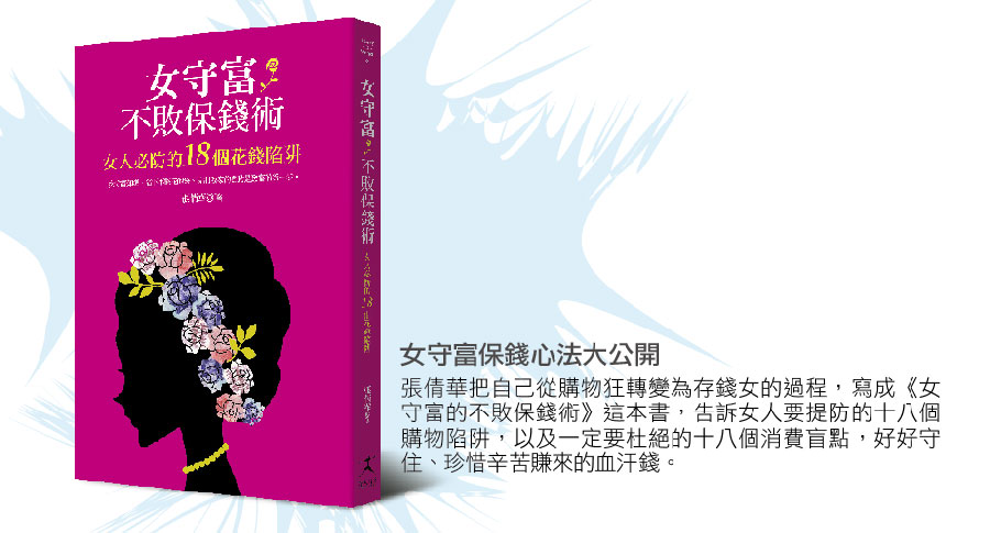 不管男人或女人,應該都很愛三朵花──有錢花、隨便花、盡量花。而在多所大學擔任助理教授、知名廣播節目主持人張倩華,原本也是個「隨便花、盡量花」的購物狂,從電視購物買到網路商城,無所不買。不料七年前,她被一位信任的朋友騙走了二十年積蓄,甚至還負債一百萬元,一夕間從快樂單身小資女變成女貧戶,開始過著被錢追著跑的日子。