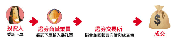 證券交易所的電腦主機收到各地證券商的買賣委託資料後,就會進行價格撮合,並隨時揭露買進價、賣出價和成交價等資訊,若有成交,就立刻回報給受託下單的證券商,投資人可以藉由證券商的電話語音查詢系統,或直接向營業員詢問是否成交。