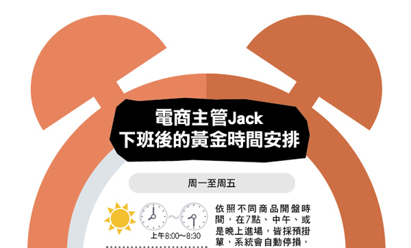 每天早上7點起床,出門上班前、中午休息各花15分鐘了解盤勢,下班後再依照各國開盤時間關心市場,「除非有明顯大行情,否則不輕易進場。」任職上市公司電商營運主管的Jack強調,雖然心繫股市,但減少交易次數,反而賺的比較多。然而,這番「看山不是山」的體悟,是Jack在股市繳了200萬元學費的代價。