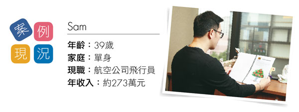 Sam是航空公司的飛行員,月薪約21萬元,但儘管收入遠遠高於一般上班族,他依然有困擾已久的財務問題。