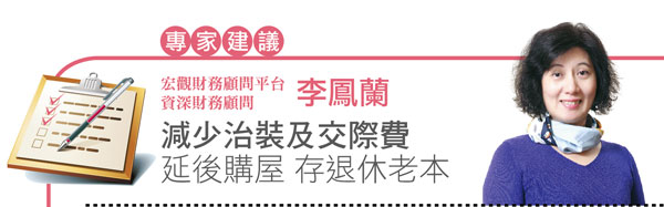 幾次諮商下來,潔西透過記帳了解金錢流向,除了每月2萬多元房租、子女教養約2萬元及生活基本開銷外,還外加1萬元治裝費與數千元的交際應酬費等,所以雖然年收入超過百萬元,但非固定支出的比重也不低,每年結餘很有限。