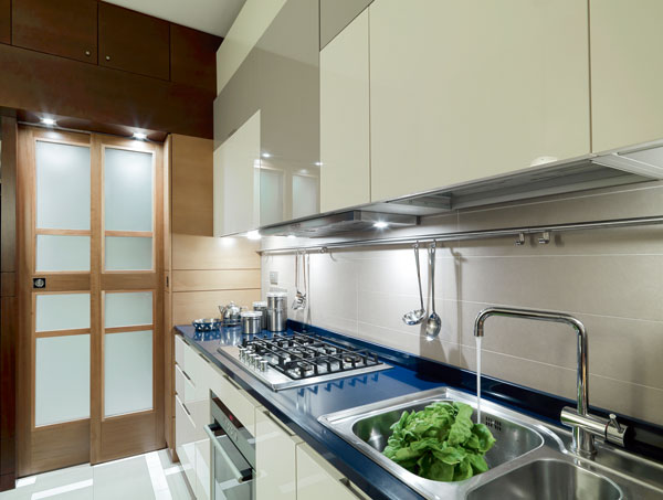 瓦斯爐的上櫃有排煙管,空間小也不宜放東西,頂多放備用的排油煙機濾網;由於瓦斯爐下方溫度較高,正下方的櫥櫃只適合擺放不怕熱的鍋碗瓢盆。