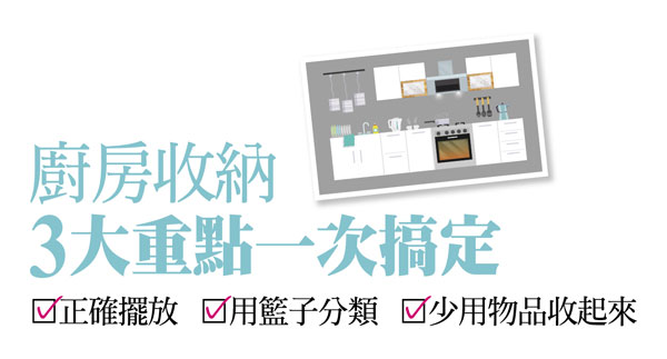 上一期台灣首位到府收納教學專家廖心筠教美人們如何收納衣櫃,本期她教大家如何擁有乾淨、整潔的廚房料理環境與空間。