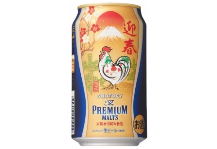 日本三得利頂級啤酒,自2015年開始連續兩年都以生肖為主題,分別推出羊年限定罐、猴年限定罐,但都只限日本當地銷售。看好過年期間,台灣人特別喜歡喜氣洋洋的商品,台灣三得利特別引進「三得利頂級啤酒The PREMIUM MALT’S_迎春雞年限定罐」。瓶身以富士山與日岀為背景,雄赳赳、活力十足的公雞佇立其中,加上松竹梅點綴,並題上大大的「迎春」字樣,象徵新的一年有個大吉(雞)大利的開始,充滿喜氣與吉祥寓意,最適合用來犒賞自己或是餽贈親友。「三得利頂級啤酒The PREMIUM MALT’S_迎春雞年限定罐」,自2017年1月起在全省全家便利商店、家樂福、大潤發、楓康、CITYSUPER限量上市,單瓶建議售價47元。