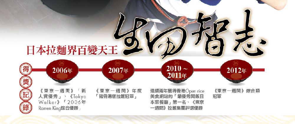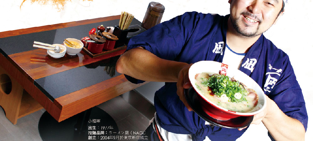 19年後的今天,他被媒體封為「拉麵界的百變天王」,事業版圖橫跨日本、香港、印尼、台灣等地。雖是日本最晚起家的拉麵界新秀,但在2012及2013年東京拉麵大賞中,他所創立的品牌,成功打敗台灣人熟悉的一蘭、一風堂拉麵,拿到第1名。從一