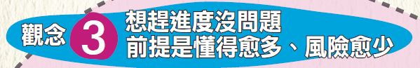 用工作能力輔助降低投資風險,就算因為冒風險而導致投資失利,也不怕流落街頭,這也是趕進度的人必備的重要觀念。