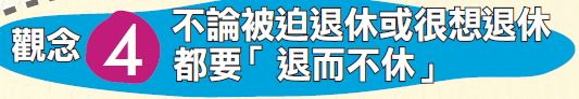 民眾必須設想在財富目標達到前,都能保障一份穩定收入,即使在財富目標達到後,也要預想自己有什麼第二專長,能在退休後補貼生活開支。「這也是著眼於大環境改變,投資人要有自覺,退而不休才是王道。