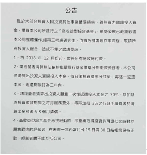 小心,你已經是詐騙集團的共犯之一 要騙就騙大額的,如何才能騙很多錢啊!(三)   郭董,『我最近投資一個全世界最熱的市場,你應該聽過全世界最熱的地區,跟我一起投資一帶一路的商機吧!你看,現在台灣的投資環境這麼差,錢放銀行利息才1%多,朋友去柬埔寨投資,您知道嗎?在柬國連國泰世華銀行的美元定存都有6%以上……來!我們一起出國玩玩去看看所謂的一代一路與投資商機。』 是商機?還是“違法吸金”?能分辨清楚又有幾人? 現今社會詐騙及非法吸金方式無奇不有、千奇百怪,令人防不勝防;你以為你在介紹的是一種適法、合法、穩當、健全的理財商機,可以讓自己與好朋友創造財富。卻絲毫沒有發現自己正一步一步的陷入詐諞集團所設下的陷阱而成為共犯之一,雖然是被害人的同時自己也是加害人而無法提告與聲張。   有些明明看似合法,但經營者居心不良或心懷不軌的蓄意淘空或惡意倒閉,造成投資人血本無歸。有些人就是居心不軌或者是不諳法令,將非法投資包裝成精美,表面看似合法,其實包藏禍心,將投資者資金蒐足後即惡性倒閉,又或者只會抄襲與專業不足,而誤觸法令遭檢舉偵查起訴後被法辦。   寶兒過去因為不懂法令的規定而誤觸銀行法,第一次是因為不小心透過朋友的介紹所參加的投資案原來是違法的,因為自己又推薦許多朋友加入因此而被判刑一年多,但是在自己的良好口才之下加上又重金聘請最高明的律師辯護,法官念在自己是初犯又不懂法律之下處以緩刑。 有鑑於過去的經驗,這一次一定要更加小心規劃與謹慎,一回生二回熟自己經歷上次經驗已經十分專業並且這次透過投資公司經營管理,加上聘請專業經理人、行銷企劃與企管顧問之實務經驗與專研違法吸金、詐騙吸金再加上搭配傳直銷業的運作手法與經營方式,這個案子又請到國際設計大師作為背書精心策畫好多年了,應該可以成功的吸收到高額的投資資金。 因為過去從事業務工作加上自己在原本的產業表現優異,也認識許多優秀的業務人員,新案件本身的條件極佳,是越南政府與中國的口岸,因為在越南必須「先取得證照之後、先動工!才可以募資」。所以!經過多年的規劃,已經用A公司取得了口岸的經營權,再透過B公司來募款,因為有完美的案子,大家可以放心的進場投資,而且設計出簡單易上口與記憶的說明投資案, 例如:越南口岸的經營四大特色是 1不可複製 2獨門生意 3穩賺不賠 4官方支持  唯一的變數就是...戰爭..... 不要再傻傻的存錢了!投資致富不是夢、走對方向走對方法幫助你小錢變大錢! 請連結【要騙就騙大額的,如何才能騙很多錢啊!(一)】   搭配「互助會」的投資模式,小額投資人就算每個月只有七千元都可以投資,進入門檻低,同時搭配金字塔型態的直銷推廣業務制度,藉由帶朋友來參加說明會就可以享受業務的收入,除了自己賺取自己的投資收益時,還可以將好的獲利計畫推薦給至親好友,慢慢地由投資人變成理財專員。 某一天投資人盧先生猛然發現自己投資三年多的越南口岸基金自始至終因為土地有釘子戶的關係部分土地沒有取得所以沒有開發,除了自己的投資已經繳完等領回之際,家人與好朋友都交了八個月了,整個投資案嘎然而止,要求基金贖回之際案子卻停止了,緊接者投資人群組消失,B公司總經理離職,最後B公司公告。 資料來源:投資人提供B公司公告 盧先生依合約要求說要解約並同意被扣33%應該拿回已繳現金67%,但公司卻說完全沒有錢,轉向請求最高業務主管,因為但是當初介紹的寶兒卻推託自己也是投資人;而當盧先生提出要訴訟時,寶兒笑笑地說,『如果說我介紹你投資我有犯罪,那麼你也介紹了你的親朋好友參加投資了所以你亦是犯罪之人,誰要你自己貪心高報酬,投資都是有風險,你要為自己的行為負責任,這樣你還要提告嗎?何況我查過了台灣這樣的刑罰很輕的,約略判刑3至5年,我表現良好大概關個一年多二年出來,獄中還剛好可以學習英文呢!……』一經寶兒說出自己從受害人變成加害人,的確他最好的朋友因為他的邀約而加入,自己在不知不覺之中變成了加害人,深怕自己的工作與未來受到影響而不敢聲張。   現今網路資訊的發達再加上各地法院實際判例及相關適用法條,可以讓我們以非常簡單的方式去查詢或去了解到應注意的事項,以避免被犯罪集團利用自己不小心錢丟了還犯法就得不償失,釐清何者為違法吸金?何者為產業詐騙?讓您在面對投資公司與琳瑯滿目的商機時,能輕易分辨其合法性與適法性,協助自己做出對自己最有利的選擇,下一集我們將探討〝到底觸犯那些法條與政府規定為何?〞您,千萬不要錯過。   以上文章專訪被詐騙之投資人,請勿對號入座如有雷同純屬巧合。資料來源FB、網路與B公司公開說明資料。