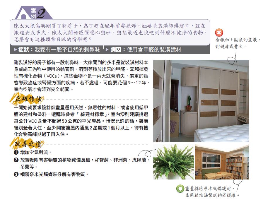 每天辛勤工作,為得就是供應家人更好的生活品質,但是,你可能從來沒有想過,不符合環保標準的建材和錯誤裝潢觀念,會害房子生病,讓你花了銀子,還傷了身子。看看以下3個案例,想想自己的子是不是也出現生病的情況!